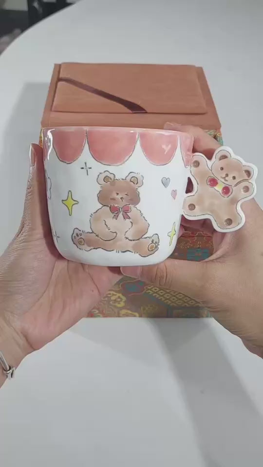 Bear Handle – Pink Color Ceramic Mug